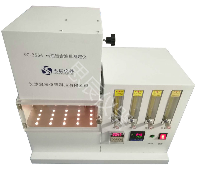 本儀器是中華人民共和國標準 GB/T3554《石油蠟含油量測定法》所規(guī)定的要求設(shè)計制造的,本儀器適用于凍凝點在 30℃以上,含油量不大于 15%的石油蠟。對于某些含油量大于5%,在丁酮中不能完全溶解而分層的石油蠟本儀器不適用。 將試樣溶解于丁酮溶劑中,溶液冷卻至-32℃時析出蠟,經(jīng)過濾管取出濾液。并將濾液中的溶劑蒸出,稱重殘留油,通過計算得到試樣含油量的質(zhì)量分數(shù)。